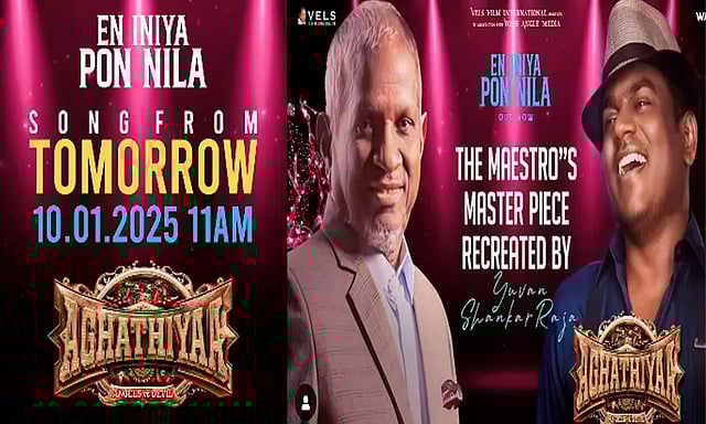இந்நிலையில், பா.விஜய் இயக்கத்தில் ஜீவா நடித்துள்ள 'அகத்தியா' படத்தில், இசைஞானி இளையராஜாவின் பாடலான 'என் இனிய பொன் நிலாவே' பாடலை ரீ-கிரியேட் செய்துள்ளார் இசையமைப்பாளர் யுவன். இப்பாடல் நாளை காலை 11 மணிக்கு வெளியாகும் என படக்குழு அறிவித்துள்ளது. இத்திரைப்படம் வரும் 31ம் தேதி வெளியாகிறது.