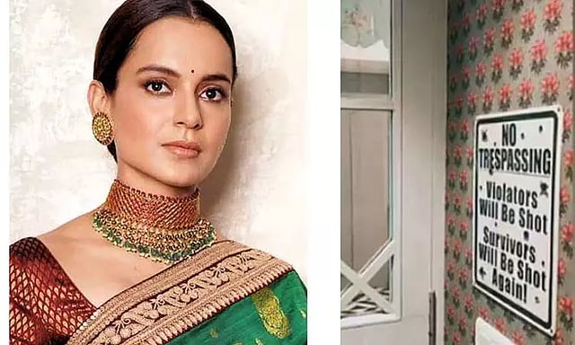 இந்த நிலையில் தற்போது கங்கனா மும்பையில் உள்ள தனது வீட்டை பழுதுபார்க்கும் பணியில் ஈடுபட்டுள்ளார். இது தொடர்பான வீடியோவை அவர் தன்னுடைய சமூக வலைதளத்தில் பகிர்ந்திருந்தார். அந்த வீடியோவில் வீட்டின் வெளியே கங்கனா வைத்துள்ள அறிவிப்பு பலகை இடம்பெற்றிருந்தது. அதில் எழுதப்பட்டுள்ள வாசகம் தற்போது பேசு பொருளாகியுள்ளது.