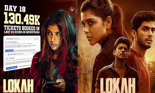 இந்த நிலையில், புக் மை ஷோ வழியாகக் கிடைத்த அதிகபட்ச டிக்கெட் விற்பனையை லோகா படம் பெற்றுள்ளது. 18 நாட்களில் 4.52 மில்லியன் டிக்கெட்டுகள் இந்தப் படத்திற்காக புக் மை ஷோ செயலி வழியாக விற்பனையாகியுள்ளன. 4.51 மில்லியன் டிக்கெட்டுகளை புக் மை ஷோ வழியாக விற்ற மலையாள சூப்பர்ஸ்டார் மோகன்லாலின் 'துடரும்' படத்தின் சாதனையை முறியடித்து லோகா இந்தச் சாதனையைப் படைத்துள்ளது.