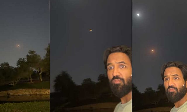 துபாயில் இருக்கும் நடிகர் விஷ்ணு மஞ்சு, தனது வீட்டின் மேல் பறந்த ஏவுகணையை வீடியோவாக பதிவு செய்து பகிர்ந்துள்ளார்.