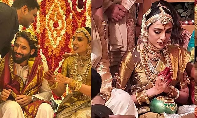 நடிகர் நாக சைதன்யா மற்றும் சோபிதா துலிபாலா திருமணம் இன்று இரவு 8:15 மணிக்கு ஐதராபாத்தில் உள்ள அன்னபூர்ணா ஸ்டுடியோவில் நடைபெற்றது. இந்த திருமணத்தில் சிரஞ்சீவி, பிரபாஸ், ராஜமவுலி, ஒலிம்பிக் பதக்கம் வென்ற பி.வி.சிந்து, ராம்சரண், நயன்தாரா, மகேஷ்பாபு உள்ளிட்ட பலர் கலந்துகொள்கின்றனர்.