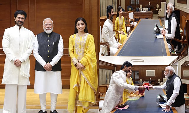 இந்நிலையில், பிரதமர் நரேந்திர மோடியை விஜய் தேவரகொண்டா - ராஷ்மிகா மந்தனா தம்பதியினர் இன்று சந்தித்து ஆசி பெற்றனர் , வரும் மார்ச் 4-ம் தேதி நடைபெற உள்ள தங்களின் திருமண வரவேற்பு நிகழ்ச்சிக்கான அழைப்பிதழை மோடியிடம் வழங்கினர்.