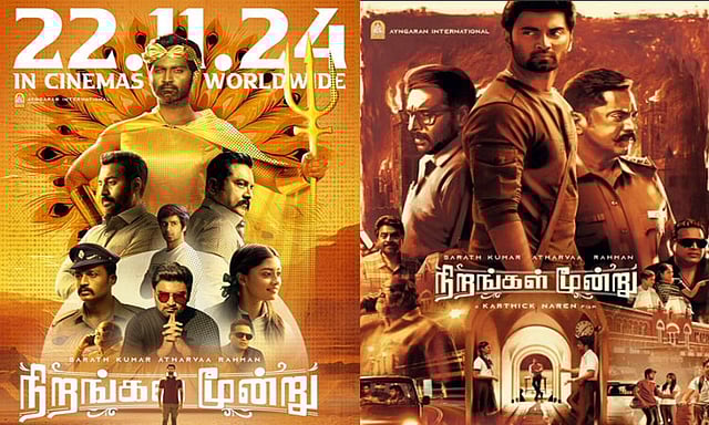 'துருவங்கள் பதினாறு' படத்தின் மூலம் கவனம் பெற்ற இயக்குனர் கார்த்திக் நரேன் இயக்கத்தில் உருவாகியுள்ள திரைப்படம் 'நிறங்கள் மூன்று'. இந்த படத்தில் நடிகர் அதர்வா முரளி, சரத்குமார், ரகுமான் ஆகியோர் முக்கிய கதாபாத்திரங்களில் நடித்துள்ளனர். ஹைப்பர்லிங்க் திரில்லர் கதையம்சம் கொண்ட திரைப்படமாக இந்த படம் உருவாகி உள்ளது.