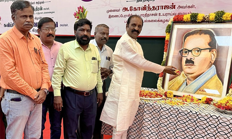 புரட்சிக்கவியும், சமூக சிந்தனையாளருமான பாவேந்தர் பாரதிதாசனின் 136-வது பிறந்தநாள் விழா இன்று கொண்டாடப்படுகிறது. இந்த நிலையில், திருச்சி பாரதிதாசன் பல்கலைக்கழகத்தில்