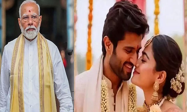 பிரதமர் மோடி திருமண வாழ்த்து கடிதத்தை விஜய் தேவரகொண்டாவின் பெற்றோருக்கு அனுப்பியுள்ளார். அதில் “திரைக்கதைகளை விட அழகான ஒரு வாழ்க்கைப் பயணத்தை விஜய் தேவரகொண்டா, ராஷ்மிகா தம்பதி தொடங்க உள்ளனர். அவர்களின் புதிய வாழ்க்கை அத்தியாயம், திரையில் உருவாக்கிய மாயாஜாலத்தை விடச் சிறப்பாக அமையும். அவர்களுக்கு அன்பும் மகிழ்ச்சியும் நிறையட்டும்" என்று கூறியுள்ளார்.