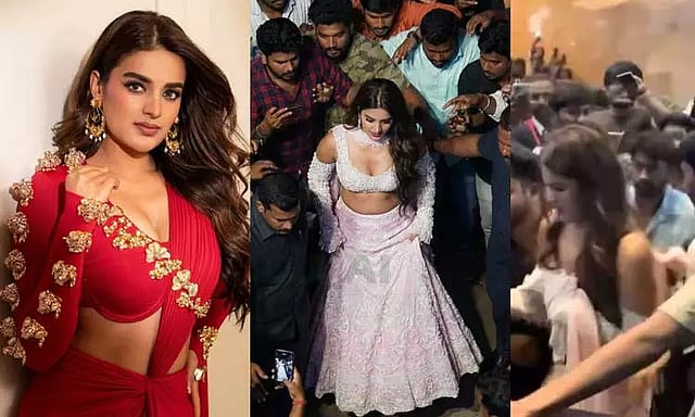 இந்த விழாவில் நிதி அகர்வால், இசையமைப்பாளர் தமன் உள்ளிட்ட படக்குழுவினர் பலர் பங்கேற்றிருந்தனர். நிகழ்ச்சியில் கட்டுக்கடங்காத அளவுக்கு ரசிகர்கள் கூட்டம் நிரம்பி வழிந்தது. நிகழ்ச்சி நடைபெற்றுக் கொண்டிருக்கும் போதே, சில ரசிகர்கள் பாதுகாப்பு தடுப்புகளைக் கடந்து செல்ல முயன்றதால், அங்கு பதற்றமான சூழல் நிலவியது. ஒருவழியாக நிகழ்ச்சி முடிந்ததும் நிதி அகர்வால், அங்கிருந்து புறப்பட காரை நோக்கி நடந்தார். ஆனால் அங்கிருந்த ரசிகர்கள் அவரை சுற்றி சூழ்ந்து கொண்டனர். அதில் சிலர் அத்துமீறி நடந்துகொண்டதாகவும் தெரிகிறது. அவரை படக்குழுவைச் சேர்ந்த சிலர் பத்திரமாக மீட்டுக் கொண்டு போய், காரில் அமரவைத்தனர். காரில் ஏறியதும், தன்னுடைய உடையை சரிசெய்துகொண்ட நிதி அகர்வால், ரசிகர்களின் இந்த செயலை கடிந்துகொள்ளும் வகையில் தன்னுடைய முக பாவனையைக் காட்டினார். இந்த வீடியோ இணையத்தில் வைரலாகி வருகிறது.