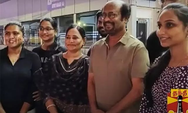 இந்தநிலையில், `வேட்டையன்' படப்பிடிப்புக்காக ஐதராபாத் செல்ல ரஜினிகாந்த் சென்னை விமான நிலையம் வந்தார். ரஜினிகாந்தை பார்த்ததும் ரசிகர்கள் உற்சாகம் அடைந்தனர். அப்போது தனது ரசிகர்களை பார்த்ததும் நெகிழ்ச்சி அடைந்த ரஜினிகாந்த் அவர்களுடன் புகைப்படம் எடுத்துக்கொண்டார். இது ரசிகர்களை மேலும் உற்சாகமடைய வைத்தது.