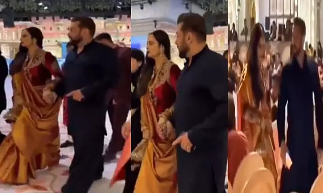 மேலும் பாரம்பரிய புடவையில் வந்த நடிகை ரேகா, ஐஸ்வர்யா ராய் மற்றும் அவரது மகளுடன் பேசி மகிழ்ந்தார். இந்தநிலையில் நிகழ்ச்சியில் கலந்து கொள்ள ரேகா உள்ள நுழையும் போது நடிகர் சல்மான் கான் அவரை வரவேற்றார். பின்னர் அவரது கையை பிடித்து கொண்டு இருவரும் ஒன்றாக உலா வந்தனர். இது குறித்த வீடியோ சமூக வலைத்தளத்தில் வைரலாகி பரவி வருகிறது.