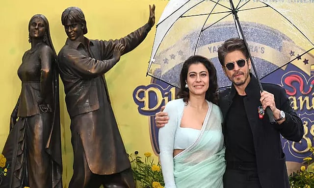 ஷாருக்கான், கஜோல் நடித்த தில்வாலே துல்ஹனியா படம் 30 ஆண்டுகளை நிறைவு செய்துள்ளது. இதனை கொண்டாடும் விதமாக லண்டன் லெஸ்டர் சதுக்கத்தில் வெண்கல சிலை அமைக்கப்பட்டுள்ளது. இங்கு அமைக்கப்படும் முதல் இந்திய பட உலோக சிலை இதுதான். இந்த சிலையின் திறப்பு விழாவில் ஷாருக்கானும், கஜோலும் கலந்து கொண்டார்கள்.