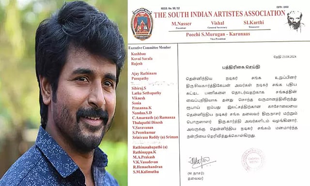 இந்த நிலையில் சிவகார்த்திகேயன், நடிகர் சங்க புதிய கட்டட பணிகளைத் தொடர்வதற்காக ரூ.50 லட்சம் நிதியுதவி அளித்துள்ளதாக தென்னிந்திய நடிகர் சங்கம் அறிக்கை வெளியிட்டுள்ளது. அந்த அறிக்கையில், "தென்னிந்திய நடிகர் சங்க உறுப்பினர் சிவகார்த்திகேயன் நடிகர் சங்க புதிய கட்டிட பணிகளைத் தொடர்வதற்காக சங்கத்தின் வைப்புநிதியாக தனது சொந்த வருமானத்திலிருந்து ரூபாய் ஐம்பது இலட்சத்திற்கான காசோலையை தென்னிந்திய நடிகர் சங்கத் தலைவர் நாசர் மற்றும் பொருளாளர் கார்த்தியிடம் வழங்கினார்" எனக் குறிப்பிட்டு சிவகார்த்திகேயனுக்கு நன்றி தெரிவித்துள்ளது.