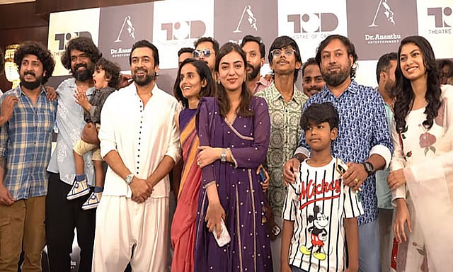 இந்த நிலையில், ஜித்து மாதவனின் மனைவி ஷபினா பபின் பாக்கர் இயக்குநராக அறிமுகமாகும் திரைப்படத்தின் பூஜை இன்று நடைபெற்றது. அதில், நடிகர் சூர்யா கலந்துகொண்டு படக்குழுவினரை வாழ்த்தியதுடன் படப்பிடிப்பையும் துவங்கி வைத்துள்ளார்.விழாவில் நடிகர்கள் நஸ்ரியா, சௌபின் சாகிர் உள்ளிட்டோரும் கலந்துகொண்டனர்.