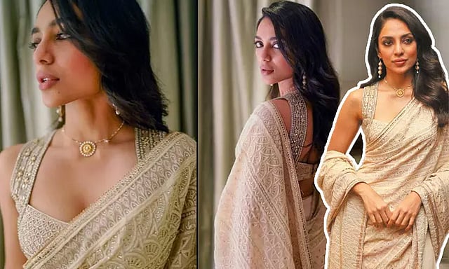 இந்த நிலையில் சோபிதா அணிந்துள்ள ஒரு புடவை அனைவரையும் கவர்ந்துள்ளது. அதன் விலையை தெரிந்து கொள்ள பலரும் இணைய தளத்தில் தேடினர். இறுதியில் சோபிதா துலிபாலா அணிந்துள்ள புடவையின் விலை ரூ.4 லட்சத்து 80 ஆயிரம் என்று தெரிந்து அதிர்ச்சியானார்கள். தற்போது அந்த புடவையுடன் கூடிய சோபிதா துலிபாலா புகைப்படம் சமூக வலைத்தளத்தில் வைரலாகி வருகிறது.