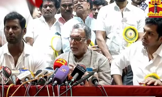 தென்னிந்திய நடிகர் சங்கத்தின் 67-வது ஆண்டு பொதுக்குழு கூட்டம் தேனாம்பேட்டையில் உள்ள காமராஜர் அரங்கத்தில் இன்று நடைபெற்றது. கூட்டத்திற்கு சங்க தலைவர் நாசர் தலைமை தாங்கினார். இந்த பொதுக்குழு கூட்டத்தில் பொதுச்செயலாளர் விஷால் வரவேற்புரை நிகழ்த்தினார். கட்டிட நிதி மற்றும் எதிர்கால பொருளாதார திட்டமிடல் குறித்து பொருளாளர் கார்த்தி விளக்கம் அளித்தார்.