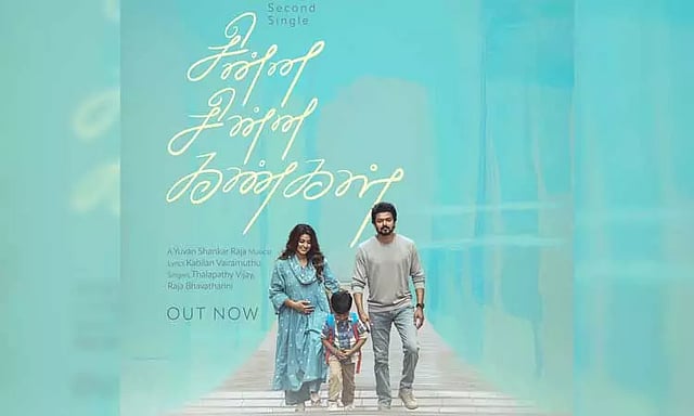 இந்த நிலையில் தற்போது 'கோட்' படத்தின் இரண்டாவது பாடலை படக்குழு வெளியிட்டுள்ளது. அதன்படி, 'சின்ன சின்ன கண்கள்' என்ற பாடலின் லிரிக் வீடியோ வெளியாகி உள்ளது. பாடலாசிரியர் கபிலன் வைரமுத்து எழுதியுள்ள இந்த பாடல் விஜய் மற்றும் மறைந்த பாடகி பவதாரிணி குரலில் உருவாகியுள்ளது. இந்த பாடல் தற்போது இணையத்தில் வைரலாகி வருகிறது.