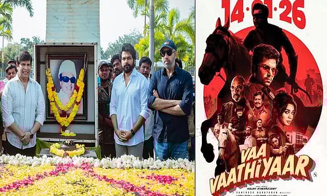 இந்த நிலையில், வா வாத்தியார் ரிலீஸை முன்னிட்டு கார்த்தி, சத்யராஜ், ஆனந்த் ராஜ் உள்ளிட்ட படக்குழுவினர் மறைந்த தமிழக முதல்வரும் நடிகருமான எம்ஜிஆர் நினைவிடம் சென்று அவரது புகைப்படத்திற்கு மாலை அணிவித்து தங்களின் மரியாதையைச் செலுத்தியுள்ளனர். இது தொடர்பான புகைப்படங்களை கார்த்தி தனது எக்ஸ் பக்கத்தில் வெளியிட்டுள்ளார்.