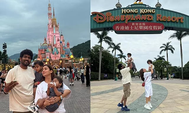 தற்போது ஹாங் காங் சுற்றுலா சென்றுள்ளவர்கள் அங்குள்ள டிஸ்னிலேண்ட் ரிசார்ட் முன்பு குழந்தைகளை ஏந்தியபடியும் டிஸ்னி கோட்டைக்கு முன்பு ஒன்றாக நிற்பது போலவும் எடுத்த படங்களை விக்னேஷ் சிவன் இன்ஸ்டாகிராம் பக்கத்தில் பகிர்ந்துள்ளார். அந்த பதிவில், "12 ஆண்டுகளுக்கு முன்பு இதே இடத்தில் செருப்பு அணிந்து கையில் ஆயிரம் ரூபாய் பணத்தோடு போடா போடி படப்பிடிப்புக்கு அனுமதி பெற வந்துள்ளேன். தற்போது எனது அன்பு குழந்தைகள் குடும்பத்தோடு அதே இடத்தில் சந்தோசமாகவும் உணர்ச்சிமயமாகவும் நிறைவாகவும் உணர்கிறேன்" எனப் பதிவிட்டுள்ளார்.