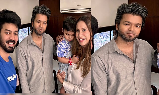 விஜய் இப்படத்தில் பல தோற்றங்களில் நடித்துள்ளார். தற்போது இதுவரை வெளியாகாத விஜய்யின் புதிய தோற்றம்கொண்ட புகைப்படத்தை நடிகர் மகத்தின் மனைவி வெளியிட்டுள்ளார். அதில் விஜய் புதிய தோற்றத்தில் உள்ளார்.