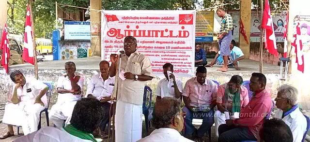 மண்ணாடிப்பட்டு தொகுதி இந்திய கம்யூனிஸ்டு கட்சி சார்பில் திருக்கனூர் சார்பதிவாளர் அலுவலகம் எதிரில் கண்டன ஆர்ப்பாட்டம் நடைபெற்றது. ஆர்ப்பாட்டத்திற்கு தொகுதி செயலாளர் பெருமாள் தலைமை தாங்கினார். நிர்வாகிகள் மன்னாதன், திருமுருகன் ஆகியோர் முன்னிலை வகித்தனர்.