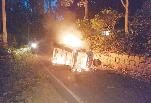 இதன்பிறகு மர்ம நபர்கள் அங்கு நிறுத்தப்பட்டு இருந்த ஆட்டோவை தீ வைத்து எரித்தனர். இதில் அந்த ஆட்டோ எரிந்து நாசம் ஆனது. இதனால் ஏற்காட்டில் இருந்து வெள்ளக்கடைக்கு போக்குவரத்து பாதிக்கப்பட்டது. பஸ் மற்றும் வாகனங்கள் அந்த வழியாக செல்லவில்லை.