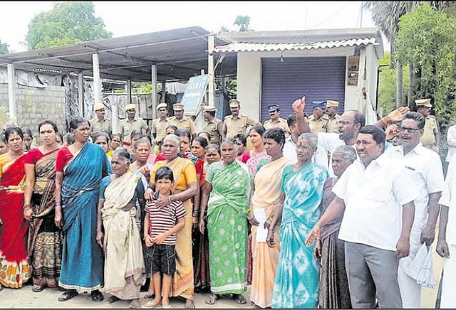 அப்போது அவர்கள், தொடர்ந்து 2 ஆண்டுகளாக போராடி வரும் பொதுமக்களை அதிகாரிகள் அலட்சியப்படுத்துவதாக கோஷம் எழுப்பினர். இந்த போராட்டத்திற்கு ஆதரவாக மார்க்சிஸ்ட் கம்யூனிஸ்டு கட்சி நிர்வாகிகள் முன்னிலை வகித்தனர்.