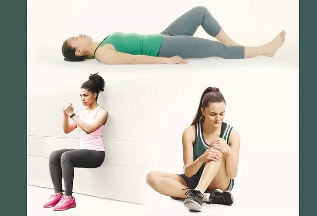 தலை, தோள்பட்டை, முதுகுத்தண்டு, இடுப்பு மற்றும் கணுக்கால் பகுதிகள் சுவரை ஒட்டியவாறு இருக்கும் நிலையில் நேராக நிமிர்ந்து நிற்கவும். பின்பு சுவரில் கீழ் முதுகுப்பகுதியை அழுத்தி, கால்களை முன்னோக்கி நகர்த்தவும். இப்போது உடலை சுவருடன் ஒட்டியவாறும், கால்களை நாற்காலி வடிவத்தில் இருக்குமாறும் வைக்கவும். இந்த நிலையில், உடலும், கால் அமைப்பும் ஆங்கில எழுத்து 'L' வடிவிலும், காலின் கீழ் அமைப்பு 90 டிகிரி அமைப்பிலும் இருக்க வேண்டும். இப்போது கைகளை தோள்பட்டைக்கு நேராக நீட்டவும். இந்த நிலையில் 20 வினாடிகள் இருந்து மீண்டும் பழைய நிலைக்கு வரவும். 10 வினாடிகள் இடைவெளியில், 3 செட் வீதம் காலை, மாலை என இரண்டு வேளையும் இந்த பயிற்சியை செய்யலாம்.