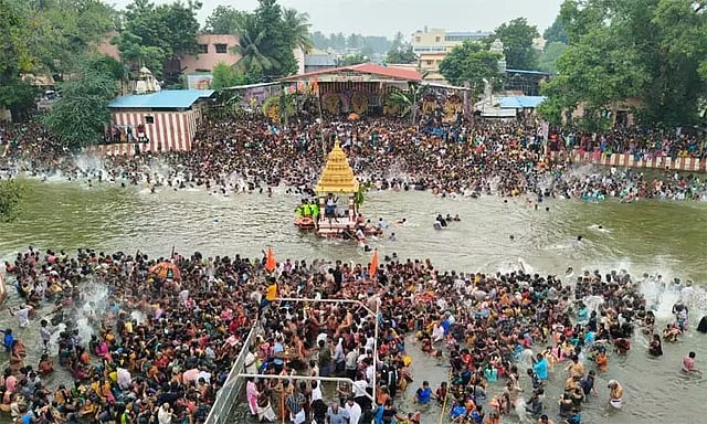 தொடர்ந்து தென்கரையில் திருவாவடுதுறை ஆதீனம் 24-வது குருமகா சந்நிதானம் அம்பலவாண தேசிக பரமாச்சாரிய சாமிகள் முன்னிலையிலும், வடக்கு கரையில் தருமபுரம் ஆதீனம் 27- வது குருமகா சந்நிதானம் மாசிலாமணி தேசிக ஞானசம்பந்த பரமாச்சாரிய சாமிகள் முன்னிலையிலும் அஸ்திரதேவருக்கு சிறப்பு அபிஷேக, ஆராதனை நடைபெற்றது.