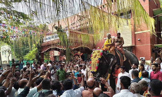 இதேபோல் தக்கலை பொதுப்பணித்துறை நீர் ஆதாரப் பிரிவு அலுவலத்தில் இருந்து மூன்று புஷ்ப காவடிகள் மற்றும் யானை மீது பால்குடம் கோவிலுக்கு எடுத்து செல்லப்பட்டன.
