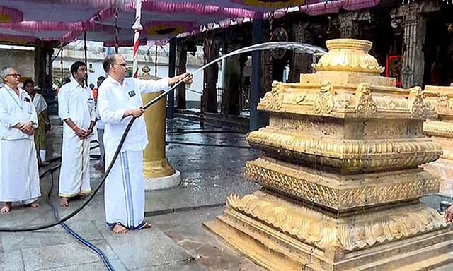 பின்னர் நாமகோபு, ஸ்ரீசூர்ணம், கஸ்தூரி மஞ்சள், கற்பூரம், சந்தனப் பொடி, குங்குமம் மற்றும் பிற புனிதப் பொருட்கள் ஆகிய நறுமண கலவை கலந்த புனித நீர், கோவில் முழுவதும் தெளிக்கப்பட்டது.