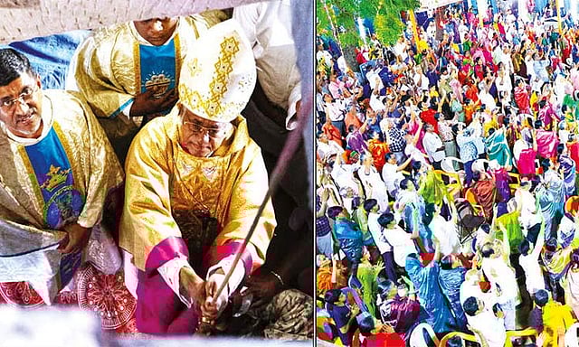 முன்னதாக, புதிய ஆலயத்தின் ஆலய மணியை அர்ச்சித்து ஆலயத்திற்கு அர்ப்பணம் செய்யப்பட்டது. வருகிற 11-ம் தேதி புதிய ஆலய கோபுர திருச்சிலுவை அர்ச்சிப்பு நிகழ்ச்சியும், 13-ம் தேதி நற்கருணை பவனியும், 14-ம் தேதி தேர் பவனியும், 15-ம் தேதி பொங்கல் விழாவும் நடக்கிறது.