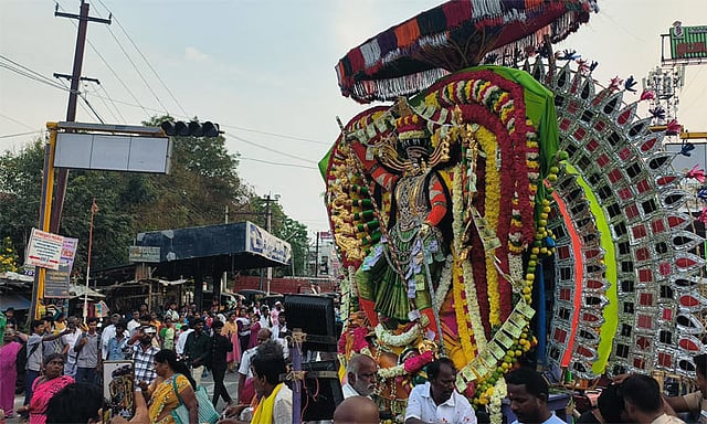 மாலையில் விழாவின் சிகர நிகழ்வான மயான கொள்ளை நிகழ்ச்சி நடைபெற்றது. இதனை முன்னிட்டு கோவிலில் இருந்து அங்காளம்மன் சிம்ம வாகனத்தில் ஊர்வலமாக சென்று சங்கராபரணி ஆற்றங்கரையில் உள்ள மயானத்தை அடைந்தார். பின்னர் அங்கு மயான கொள்ளை நிகழ்ச்சி நடைபெற்றது. பூசாரிகள் சிறப்பு பூஜைகள் செய்ததை தொடர்ந்து பக்தர்கள் கொழுக்கட்டை, சுண்டல், தானியங்கள் உள்ளிட்டவைகளை வாரி இறைத்து தங்கள் வேண்டுதலை நிறைவேற்றி சாமி தரிசனம் செய்தனர். இதில் ஏராளமான பக்தர்கள் கலந்து கொண்டனர்.