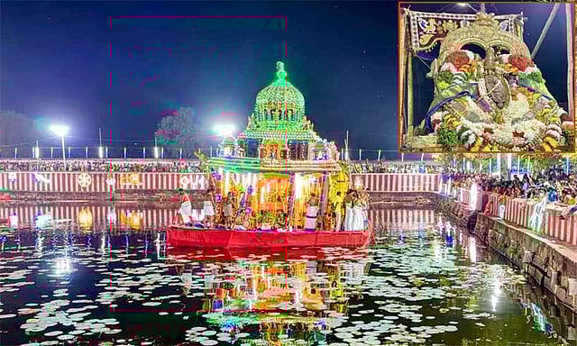 கடந்த 9ம் நாள் விழா தேர் திருவிழாவில் நம்மாழ்வார் தேரில் எழுந்தருளி வீதிவலம் வந்து அருள்பாலித்தார்.10ம் நாள் திருவிழாவான நேற்று முன்தினம் 7ம் தேதி இரவு நடைபெற்ற தெப்ப திருவிழாவில் சுவாமி பொலிந்து நின்ற பிரான் பெருமாள் தெப்பத்தில் எழுந்தருளி வலம் வந்து பக்தர்களுக்கு காட்சி அளித்தார்.