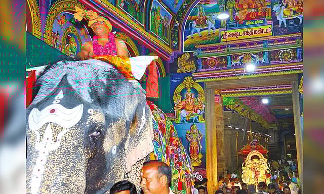 அதை தொடர்ந்து நேற்று மாலை 6 மணிக்கு சிம்ம வாகனத்தில் மாரியம்மன் எழுந்தருளி காட்சி அளித்தார். அப்போது மீனாட்சி, சுந்தரேஸ்வரரிடம் இருந்து கொடிப்பட்டத்தை பூசாரி பெற்றுக்கொண்டு, யானை மீது அமர்ந்து 4 சித்திரை வீதி வழியாக வலம் வந்து தெப்பக்குளம் கோவிலுக்கு வந்து சேர்ந்தார்.
