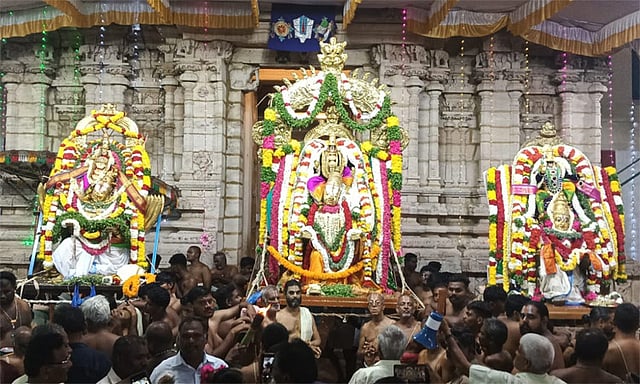 11.30 மணிக்கு மூன்று பெருமாள்களுக்கும் சிறப்பு திருமஞ்சனம், தீபாராதனை நடந்தது. பின்னர் அத்யாபகர்கள் சீனிவாசன், ஸ்ரீகிருஷ்ணன், பட்சி ராஜன், திருவேங்கடத்தான், வீரராகவன், அனந்த வெங்கடேசன், சேஷகிரி, வரதசடகோபன், மதுரகவி, பாலாஜி, அனந்த ஆழ்வார், கிருண்ணன் ஆகியோர் சேவித்தனர். சாத்து முறை கோஷ்டி தீர்த்தம் சடாரி பிரசாதம் பக்தர்களுக்கு வழங்கப்பட்டது.