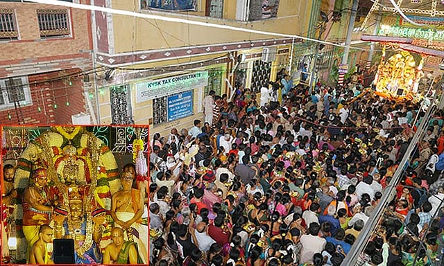 வாகன சேவையில், திருமலை பெரிய ஜீயர் சுவாமி, சின்ன ஜீயர் சுவாமி, திருமலை திருப்பதி தேவஸ்தான இணை நிர்வாக அதிகாரி வீரபிரம்மம், கோவில் துணை நிர்வாக அதிகாரி, நாகரத்னா, கண்காணிப்பாளர் முனிசங்கர், கோவில் ஆய்வாளர் சுரேஷ் மற்றும் அர்ச்சகர்கள், திரளான பக்தர்கள் பங்கேற்றனர்.