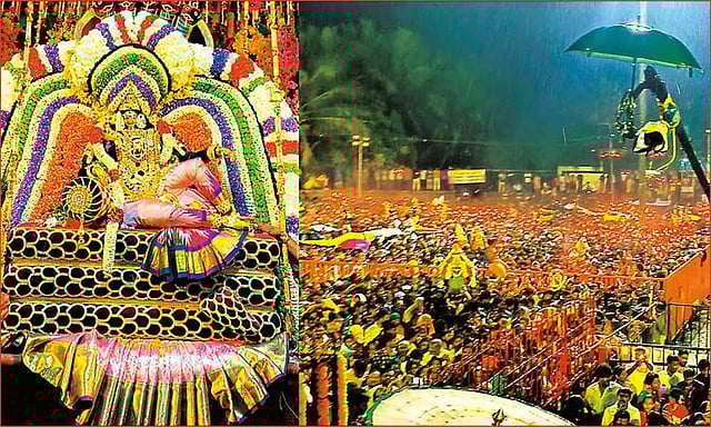 அதன்பிறகு உற்சவர் அம்மனுக்கு பல்வேறு வகையான மலர்களை கொண்டு சேஷசயனம் அலங்காரம் செய்யப்பட்டு உட்பிரகாரத்தில் பக்தர்களுக்கு அருள்பாலித்தார். பின்னர் இரவு 11 மணியளவில் மேள தாளம் முழங்க வடக்கு வாசல் வழியாக உற்சவர் அங்காள பரமேஸ்வரி அம்மன் சிறப்பு அலங்காரத்தில் ஊஞ்சல் மண்டபத்தில் எழுந்தருளினார். அப்போது அங்கு இடி-மின்னலுடன் பலத்த மழை பெய்தது. இருப்பினும் ஊஞ்சல் மண்டபம் எதிரில் திரண்டிருந்த ஆயிரக்கணக்கான பக்தர்கள் கொட்டும் மழையில் குடைகளை பிடித்தபடி கற்பூர தீபம் ஏற்றி அம்மனை வழிபட்டனர்.