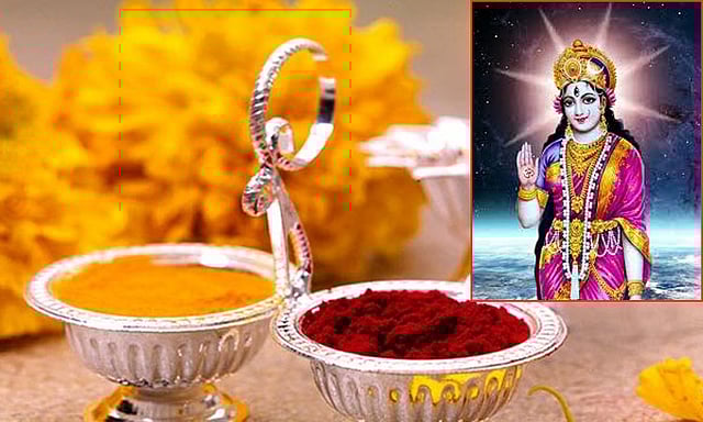 மஞ்சள் - குங்குமம் இந்த இரண்டிலும் மகாலட்சமி வாசம் செய்வதாக ஐதிகம். இயற்கையாகவே மஞ்சள் கிருமிநாசினி என்பதை நாம் அறிவோம். வெப்பத்தால் ஏற்படக்கூடிய நோய்கள், மழைக்காலத்தில் வரக்கூடிய நோய்கள் (மழை பூமியில் இருக்கிற வெப்பத்தை வெளிப்படுத்துவதால், அந்த வெப்பத்தினால் பல வியாதிகள் வருகிறது) இதற்கெல்லாம் மஞ்சள்தான் மாமருந்தாகிறது.