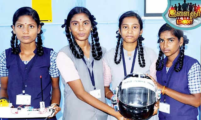 ஒரு குடும்பத்தின் வாழ்வாதாரத்திற்கான அடிப்படையாக இருப்பவர்கள், சாலை விபத்தில் சிக்கி இறக்கும்போது, அந்த குடும்பத்தின் எதிர்காலமே கேள்விக்குறியாகி விடுகிறது. எனவேதான் உயிரின் முக்கியத்துவம் அறிந்து, விபத்துகளை தவிர்க்க சாலை விதிமுறைகளை கடைப்பிடிக்க சொல்கிறார்கள். அதிலும் குறிப்பாக, ஹெல்மெட் அணிந்து வண்டி ஓட்டவும், மது அருந்தாமல் வண்டி ஓட்டவும் அறிவுறுத்துகிறார்கள். இந்நிலையில் பெரம்பலூர் மாவட்டம், ஆலத்தூர் தாலுகா, நக்கசேலம் கிராமத்தில் உள்ள அரசு மேல்நிலைப்பள்ளியில் படிக்கும் 4 மாணவிகள், நுண்ணறிவு திறனால் மேம்படுத்தப்பட்ட நவீன ஹெல்மெட்டை உருவாக்கி, சாலை விபத்துக்களை குறைக்கும் முயற்சியில் ஈடுபட்டுள்ளனர். யாழினி, சர்மிளா, பூஜா, கங்கா ஆகிய மாணவிகள்தான், தங்கள் பள்ளியின் புத்தாக்க மேம்பாட்டு திட்ட ஆசிரியர் ஓம் பிரகாஷ் வழிகாட்டுதலுடன் நுண்ணறிவு தலைக்கவசத்தை (ஸ்மார்ட் சென்சார் ஹெல்மெட்) கண்டுபிடித்து அசத்தியுள்ளனர். இது மது அருந்தியிருந்தாலும், ஹெல்மெட் அணியாமல் வண்டி ஓட்ட முயற்சித்தாலும், வாகனத்தை இயக்க விடாது. இன்னும் நிறைய அவசியமான சென்சார்களை கொண்டு இந்த ஹெல்மெட்டை உருவாக்கி இருக்கிறார்கள். இதுபற்றி மாணவிபூஜா பகிர்ந்து கொள்கிறார்.
