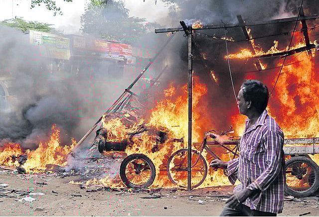 சென்னை புதுப்பேட்டையில் பழைய வாகன உதிரி பாகங்கள் விற்பனை செய்யும் கடையில் ஏற்பட்ட தீ விபத்தில் சிக்கி 1 லட்சம் மதிப்பிலான பொருட்கள் எரிந்து நாசமாகின.
