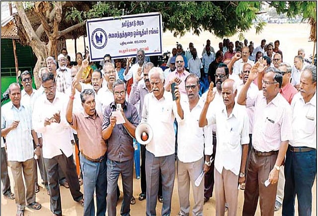 தமிழ்நாடு அரசு அனைத்து துறை ஓய்வூதியர் சங்கத்தின் சார்பில் ஆர்ப்பாட்டம் கடலூர் மாவட்ட பழைய கலெக்டர் அலுவலகம் எதிரே நடைபெற்றது. இதற்கு மாவட்ட தலைவர் பழனி தலைமை தாங்கினார். செயலாளர் மனோகரன் கோரிக்கைகளை விளக்கி பேசினார்.