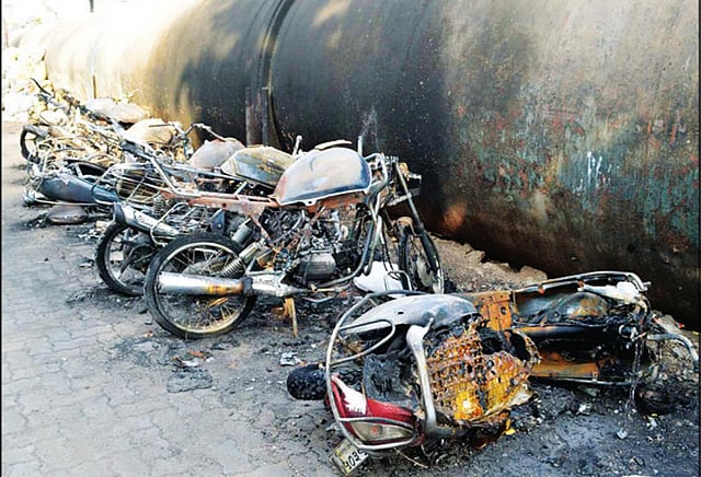 மும்பை பாண்டுப்பில் உள்ள ஸ்ரீராம்பாடாவில் கட்டிடம் முன்பு குடியிருப்புவாசிகள் தங்களது வாகனங்களை நிறுத்தி வைத்திருந்தனர். நேற்று அதிகாலை ஒரு மோட்டார்சைக்கிள் பயங்கரமாக தீப்பிடித்து எரிந்து கொண்டிருந்தது. சிறிது நேரத்தில் தீ அருகில் நிறுத்தி வைக்கப்பட்டிருந்த மற்ற வாகனங்கள் மீதும் பரவியது.