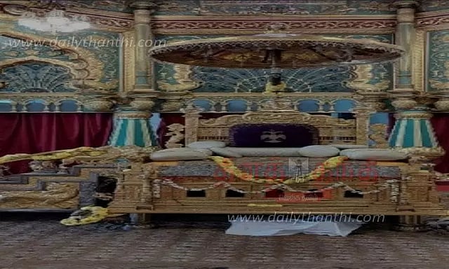 சிம்மாசனம் ஜோடிப்பு பணி நடந்ததால் நேற்று காலை முதல் மதியம் வரை அரண்மனைக்கு செல்ல சுற்றுலா பயணிகளுக்கு தடை விதிக்கப்பட்டு இருந்தது.