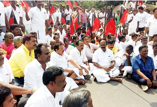திருக்கோவிலூர் சட்டமன்ற தொகுதிக்குட்பட்ட காட்டுப்பையூர், வடமலையனூர், வில்லிவலம், கொரக்கந்தாங்கல், டி.கொடியூர் மற்றும் அடுக்கம்-தண்டரை ஆகிய கிராமங்களில் சாலைகள் சேதமடைந்து குண்டும், குழியுமாக காணப்பட்டது. இதனால் பாதிக்கப்பட்ட பொதுமக்கள் மற்றும் தி.மு.க.வினர் சேதமடைந்துள்ள அனைத்து சாலைகளையும் சீரமைக்க வேண்டும் என்று சம்பந்தப்பட்ட துறை அதிகாரிகளிடம் பலமுறை கோரிக்கை வைத்தனர். இருப்பினும் எந்த நடவடிக்கையும் எடுக்கப்படவில்லை.