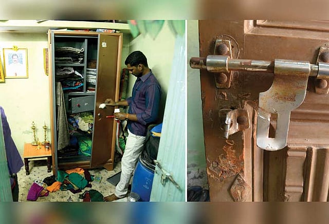 அங்கு வீட்டின் முன்பக்க இரும்பு கதவு, தாழ்ப்பாள், மரக்கதவின் பூட்டுகள் உடைக்கப்பட்டிருந்தன. அதிர்ச்சி அடைந்த பன்னீர்செல்வம் உள்ளே சென்று பார்த்தார். அங்கு அறைகள் முழுவதும் ஆங்காங்கே துணிகள், பொருட்கள் சிதறி கிடந்தன. பீரோக்கள் உடைக்கப்பட்டு, அதில் இருந்த 25 பவுன் நகை, ரூ.4 லட்சம் திருட்டு போயிருந்தது தெரிய வந்தது.