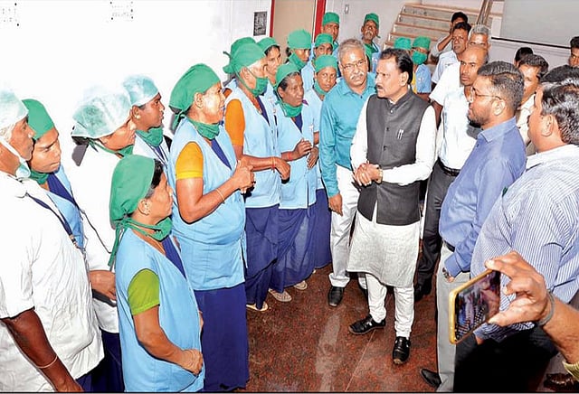 இந்த ஆய்வின் போது தங்களுக்கு சம்பளம் குறைவாக வழங்கப்படுவதாகவும், சம்பளத்தை அதிகரித்து வழங்க நடவடிக்கை எடுக்க வேண்டும் என்றும், வாரவிடுமுறை அளிக்க நடவடிக்கை எடுக்க வேண்டும் என்றும் சில சுகாதார பணியாளர்கள் கண்கலங்க கோரிக்கை வைத்தனர். அதனை ஏற்றுக்கொண்ட அவர் இதன் மீது நடவடிக்கை எடுக்க அதிகாரிகளுக்கு பரிந்துரை செய்வதாகவும், ஒப்பந்த பணியாளர்களாக இருக்கும் உங்களை நிரந்தர பணியாளர்களாக மாற்ற சம்பந்தப்பட்ட அதிகாரிகளுக்கு பரிந்துரை செய்கிறேன் என்றும் உறுதியளித்தார். இதனால் சுகாதார பணியாளர்கள் மகிழ்ச்சி அடைந்தனர். இதையடுத்து அங்கிருந்து அவர் புறப்பட்டு சென்றார்.