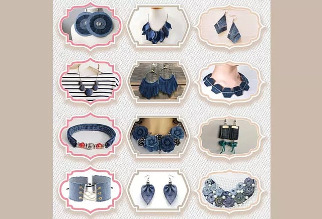 பெண்கள் அணியும் அணிகலன்களில், ஒவ்வொரு நாளும் புதுமைகள் வந்துக்கொண்டு இருக்கின்றன. தற்போது துணிகளைக் கொண்டு செய்யும் நகைகளுக்கு அதிக வரவேற்பு இருக்கிறது. அந்த வகையில் 'ஜீன்ஸ்' நகைகள் தனித்துவமானவை. ஜீன்ஸ் வகை துணிகளை கொண்டு கம்மல், நெக்லஸ், பிரேஸ்லெட் என விதவிதமாக அணிகலன்கள் தயாரிக்கப்படுகின்றன.