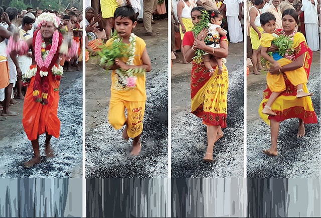 முக்கிய நிகழ்ச்சியான குண்டம் விழா நேற்று நடைபெற்றது. முன்னதாக 60 அடி நீளத்தில் அமைக்கப்பட்ட குண்டத்துக்கு சிறப்பு பூஜைகள் செய்து கோவில் பூசாரி சிவாச்சலம் தீ மிதித்து தொடங்கியது.