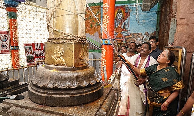 அப்போது கோவில் கருவறை, கொடிக்கம்பம், துணைச் சன்னதிகள், கோவில் மேற்கூரை, தூண்கள், தரைதளம், பூஜைகளுக்கு பயன்படுத்தப்படும் தாமிர, பித்தளைப் பொருட்கள் ஆகியவை தூய நீரால் கழுவி சுத்தம் செய்யப்பட்டது. அதன்பிறகு கோவில் வளாகம் முழுவதும் சுகந்த திரவியம் தெளிக்கப்பட்டது.
