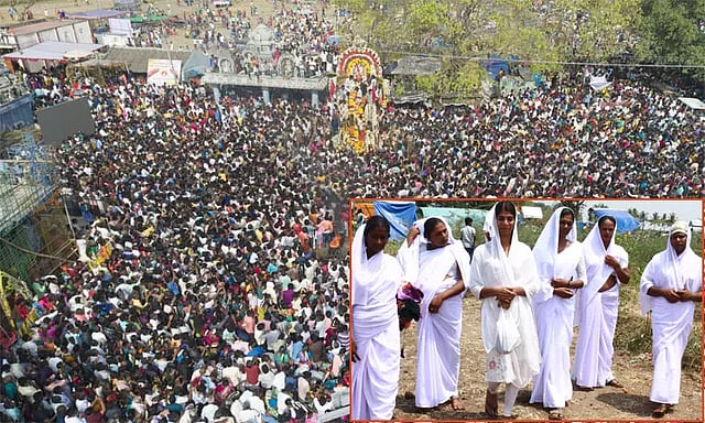 பின்னர் திருநங்கைகள், அங்கிருந்த விவசாய கிணறுகளுக்கு சென்று குளித்து வெள்ளைச்சேலை அணிந்து விதவைக்கோலத்துக்கு மாறி சோகமயமாய் கூவாகத்தில் இருந்து தங்கள் சொந்த ஊருக்கு புறப்பட்டுச்சென்றனர்.