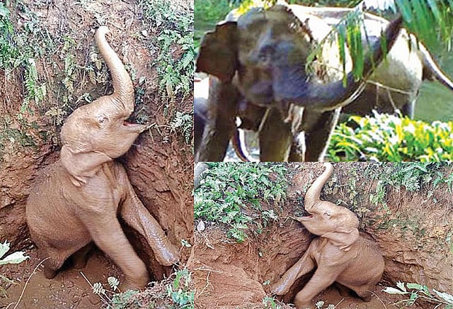 அதிர்ச்சி அடைந்த மற்ற யானைகள் கிணற்றுக்கு அருகே வந்து துதிக்கையை நீட்டி காப்பாற்ற முயன்றது. சுவர் கட்டப்படாத அந்த கிணற்றின் பக்கவாட்டு பகுதியில் இருந்த மண் யானைகளின் பாரங்களுக்கு தாக்குப்பிடிக்க முடியாமல் இடிந்து விழுந்தன. ஆபத்தை உணர்ந்த காட்டுயானைகள் பிளிறின.