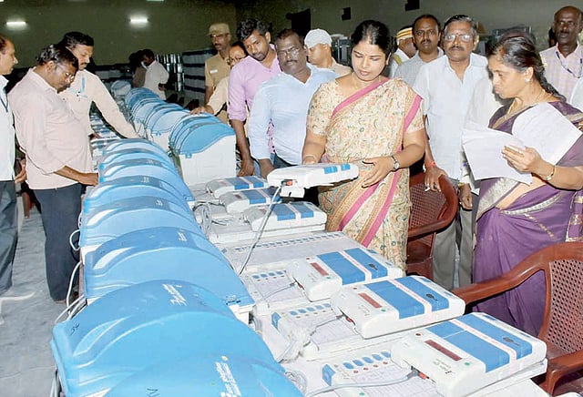 இந்த எந்திரங்களை முதல் நிலை சரிபார்க்கும் பணி சமீபத்தில் நடந்தது. பெங்களூரில் இருந்து 10 முதல் 25 என்ஜினீயர்கள் வந்து மின்னணு வாக்குப்பதிவு எந்திரங்களை சரிபார்த்தனர். சரிபார்த்த எந்திரங்களில் ஸ்டிக்கர் ஒட்டப்பட்டு உள்ளது. இதில் 5 சதவீத மின்னணு வாக்குப்பதிவு எந்திரங்கள் தேர்தல் ஆணைய விதிமுறைக்கு உட்பட்டு மாதிரி தேர்தல் நடத்துவதற்காக எடுக்கப்பட்டுள்ளது.